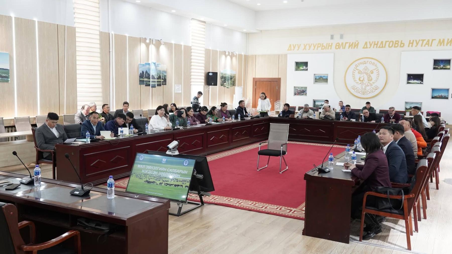 Дундговь аймгийн мал эмнэлгийн салбарын нэгдсэн зөвлөгөөн болж, сумдын мал эмнэлгийн уялдаа холбоо, цаашдын зорилт, арга хэмжээг тодорхойлох чиглэлд хэлэлцүүлэг өрнөж байна.
