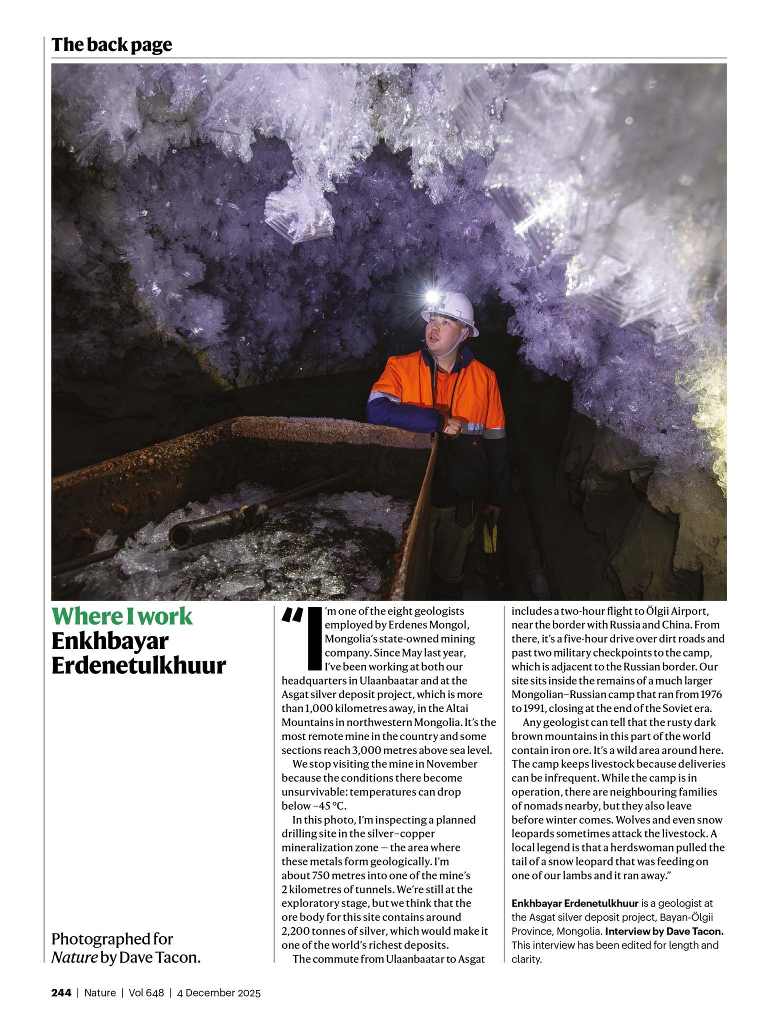 “Эрдэнэс Монгол” ХХК-ийн геологич Э.Энхбаярын “Асгат” төслийн явц, ажиллах нөхцөл, геологийн орчин болон өөрийн мэргэжлийн онцлогийн талаар хуваалцсан ярилцлага олон улсын шинжлэх ухааны NATURE сэтгүүлд нийтлэгдлээ.