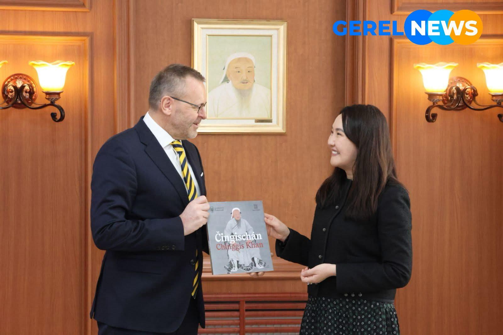 Мөн талууд Монгол, Чехийн хооронд дипломат харилцаа тогтоосны 75 жилийн ойн хүрээнд Чехийн Үндэсний музейд дэлгэсэн “Чингис хаан” үзэсгэлэн маш амжилттай болсныг цохон тэмдэглээд 2027 онд тус музейд Монголд олдсон үлэг гүрвэлийн олдворуудаар гаргахаар төлөвлөж буй үзэсгэлэнгийн бэлтгэл ажлын талаар санал солилцлоо.
